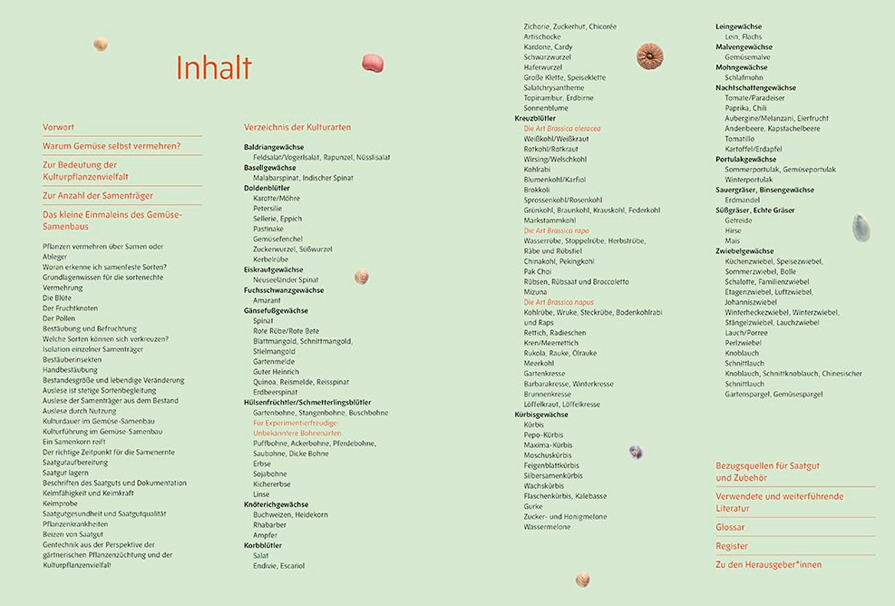 - wertvolle Tipps zum Samenbau aus dem Erfahrungsschatz von Andrea Heistinger, dem Verein Arche Noah und seinen VielfaltsgärnterInnen sowie ProSpecieRara