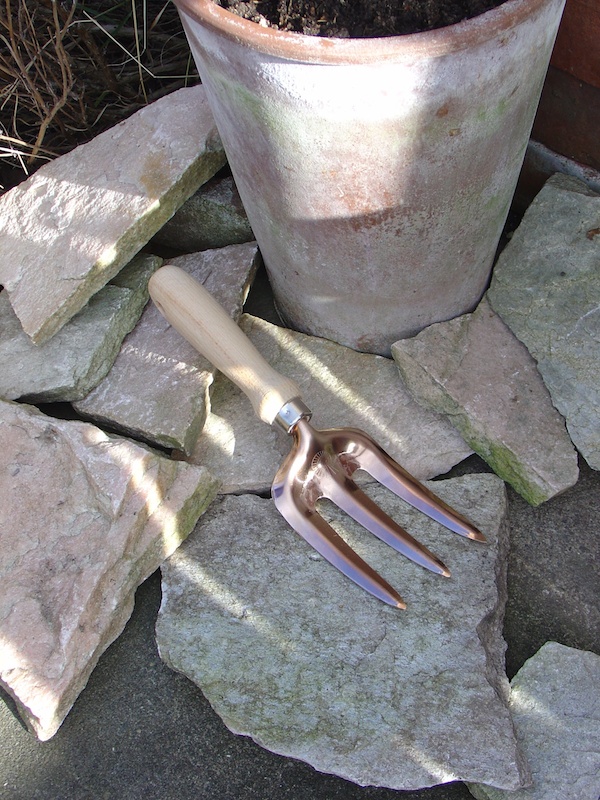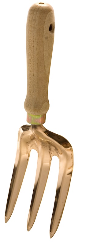 Ideal zum Ausheben der Wurzelballen.Kupferlegierung, Griff aus Buchenholz.