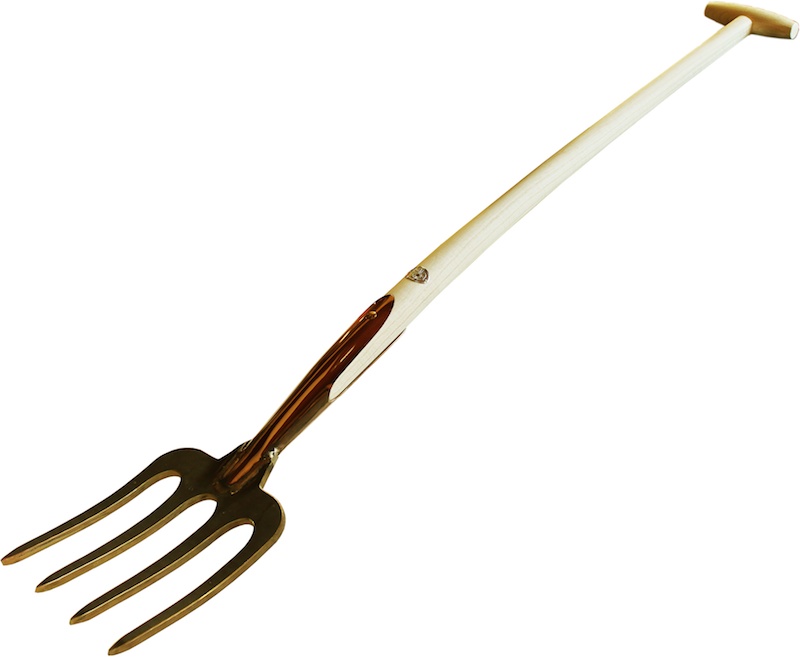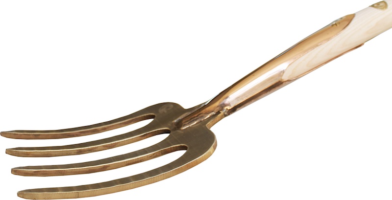 108 cm lang 16,5 cm breit Gewicht: 1650 g leichter als herkömmliche Grabgabeln Polierte massive Kupferlegierung, auf Grund der hohen Belastungen die diese Grabgabel aushalten muss, wird nur diese aus einer besonderen Kupferlegierung (Alu-Bronze) hergestellt. Diese Legierung enthält geringste Mengen an Eisen und ist daher leicht magnetisch. ergonomischer, unbehandelter Stiel aus Eschenholz Die meisten Arbeiten, die früher mit einem Spaten gemacht wurden, werden heute mit einer Grabgabel erledigt. Sie erleichtert die Arbeit des Grabens und Lockern, da ihre vier leicht gebogenen Zinken viel müheloser in den Boden dringen. Besonders wichtig ist sie für verunkrautete Bodenflächen. Wer sich erst einmal an dieses Gartengerät gewöhnt hat, will es nicht mehr missen. Versandkostenfrei!