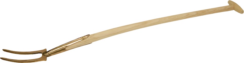 Nicht nur für Rosen, aber ursprünglich dafür entwickelt, ist die Rosengabel heute unter den englischen Gärtnern ein nicht mehr wegzudenkendes Gartengerät. Bei der sorgfältigen Pflege von Rosen ist es nämlich notwendig den Boden bis in eine Tiefe von mehr als 20 Zentimetern hin und wieder zu lüften und zu lockern. Dank der besonderen Konstruktion mit den beiden Zinken gelingt dies mit dieser Rosengabel bequem und gut. Selbstverständlich können auch andere Pflanzbereiche des Gartens damit gepflegt, gelüftet und gelockert werden. Die Rosengabel ist solide gearbeitet und hat eine Gesamtlänge von ca 108 cm.