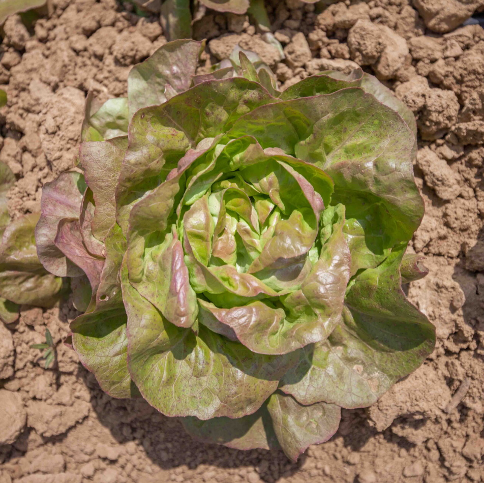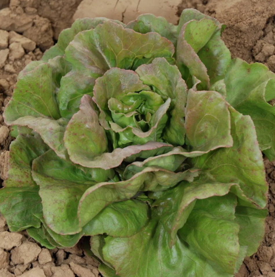 Diese alte französische Sorte ist robust und wüchsig und bildet einen schönen, dichten Kopf, der von glatten, grünen, rosa überhauchten Blättern umgeben ist.
