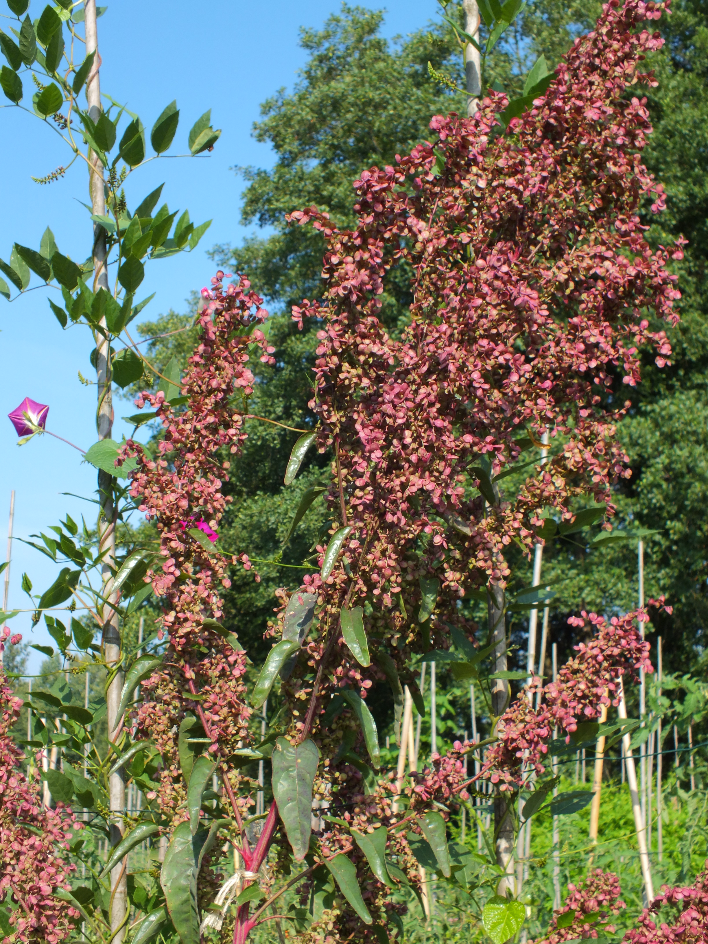 Alte Kultursorte, Purpurvioletter Blickfang. Als Rohkost (Smoothies) oder Wildspinat. Gute Mineralienquelle. Wüchsig. Feucht halten.