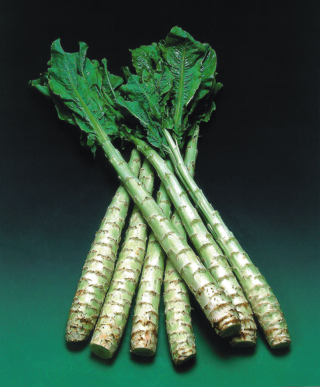 Aus China. Blätter wie Salat. Strünke als Pickles.