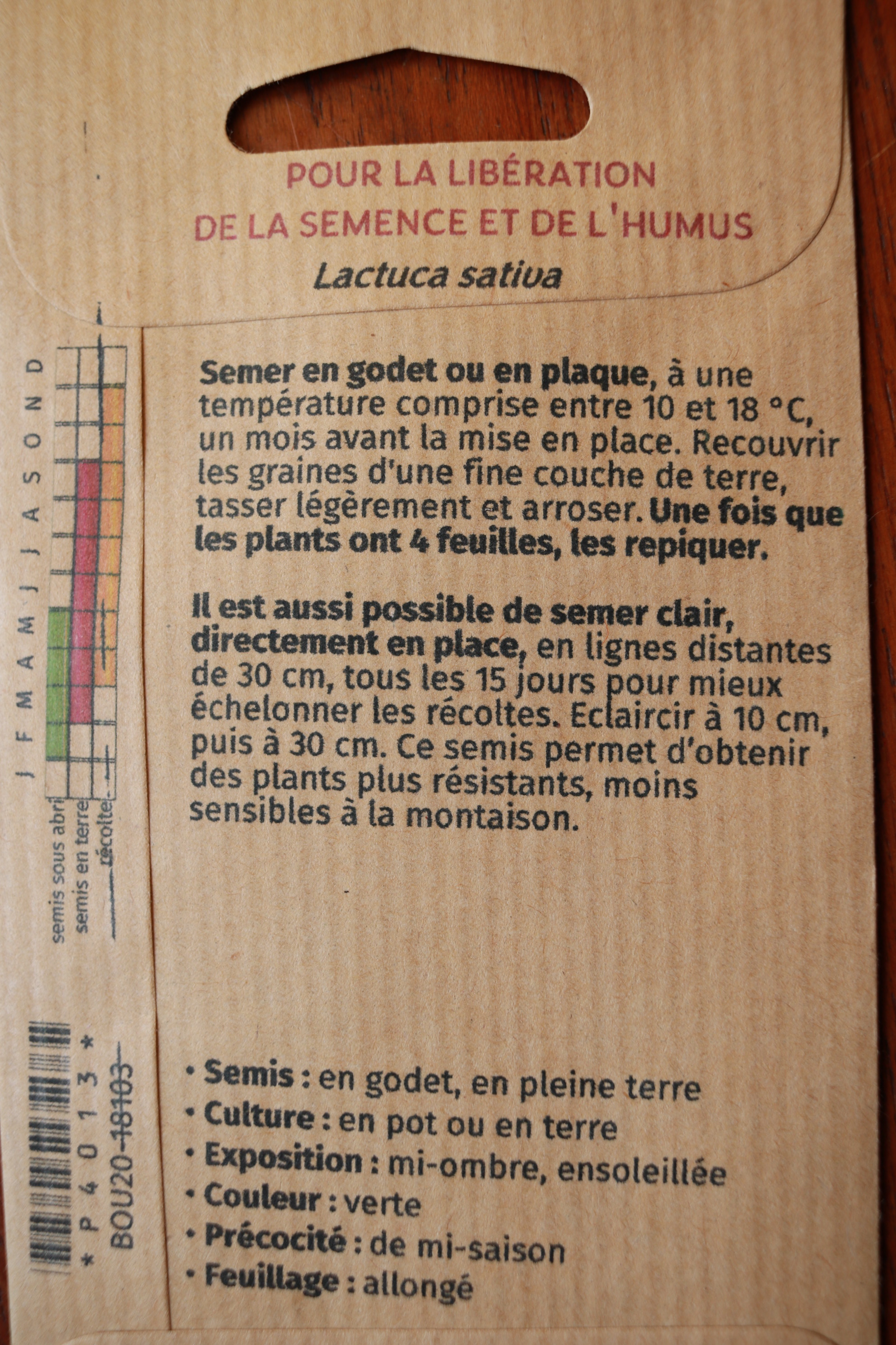 Traditionelle Sorte, Frankreich. Hoch und schlank. Bei früher Aussaat wie Schnittsalat – wächst immer wieder nach! Auch als Baby-Leaf verwendbar. Köstlich! Sehr Knackig. Äußerst resistent (z.B. Mehltau). Ganzjahresanbau möglich. kbA, Demeter.
