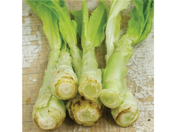 Vor 1885. Typ Römersalat. Sehr hohe, lockere Köpfe bis 40 cm. Lanzenförmige Blätter, purpurroter Saum. Rötliche. Strünke wie Spargel in Butter gedünstet. Sehr robust. Schnell schießend. kbA, Inhalt: 1 g