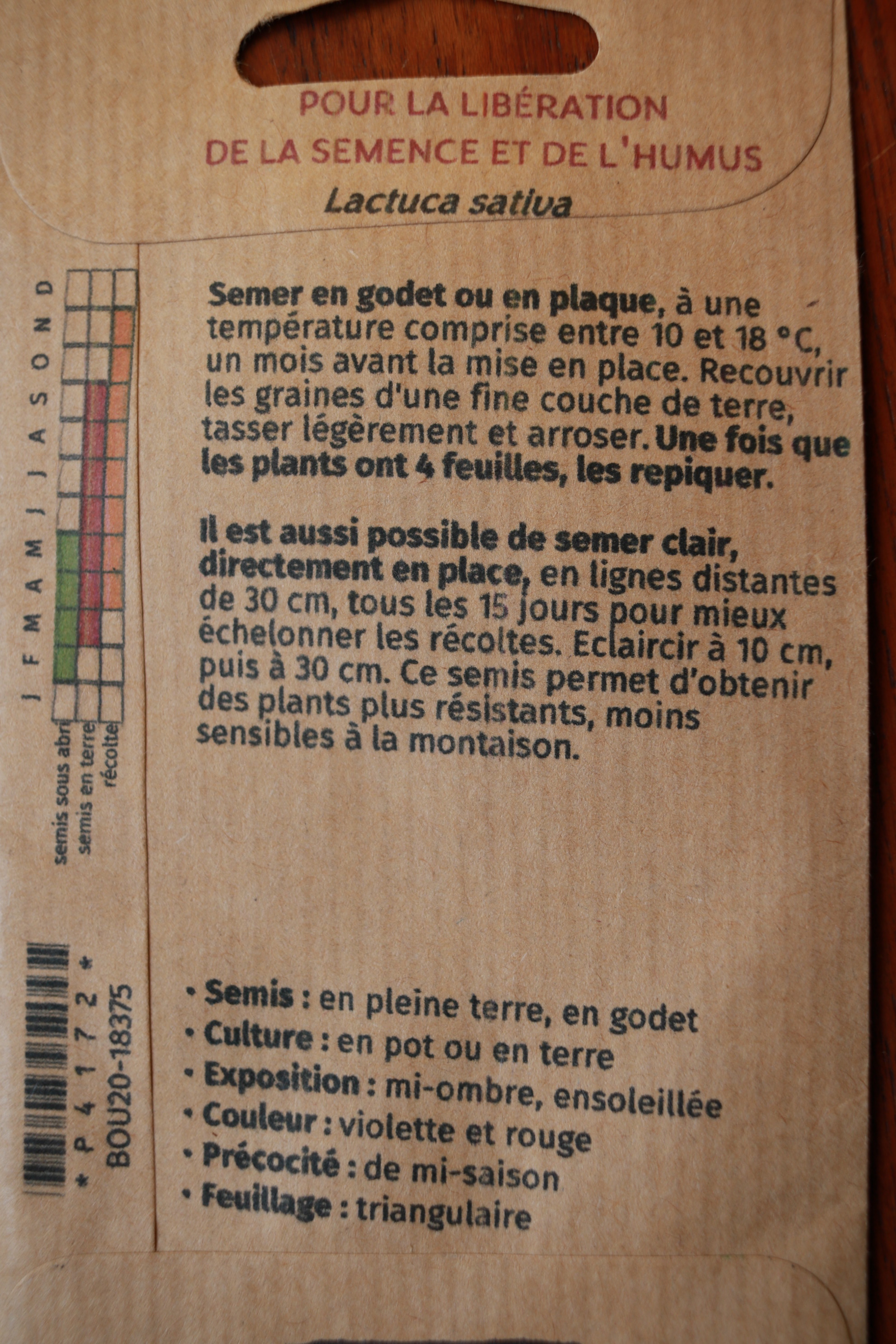 Mittelgrosse Köpfe mit cremefarbenem Herz. Sehr lockere, rote Blätter. Sehr zarter, geschmacksvoller Salat von guter Qualität. Ernte nach 55 Tagen.