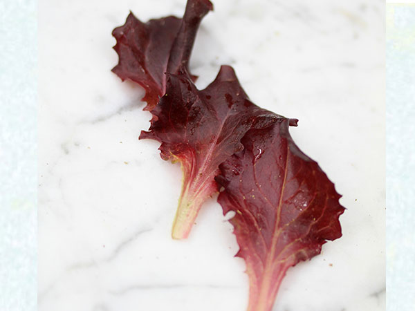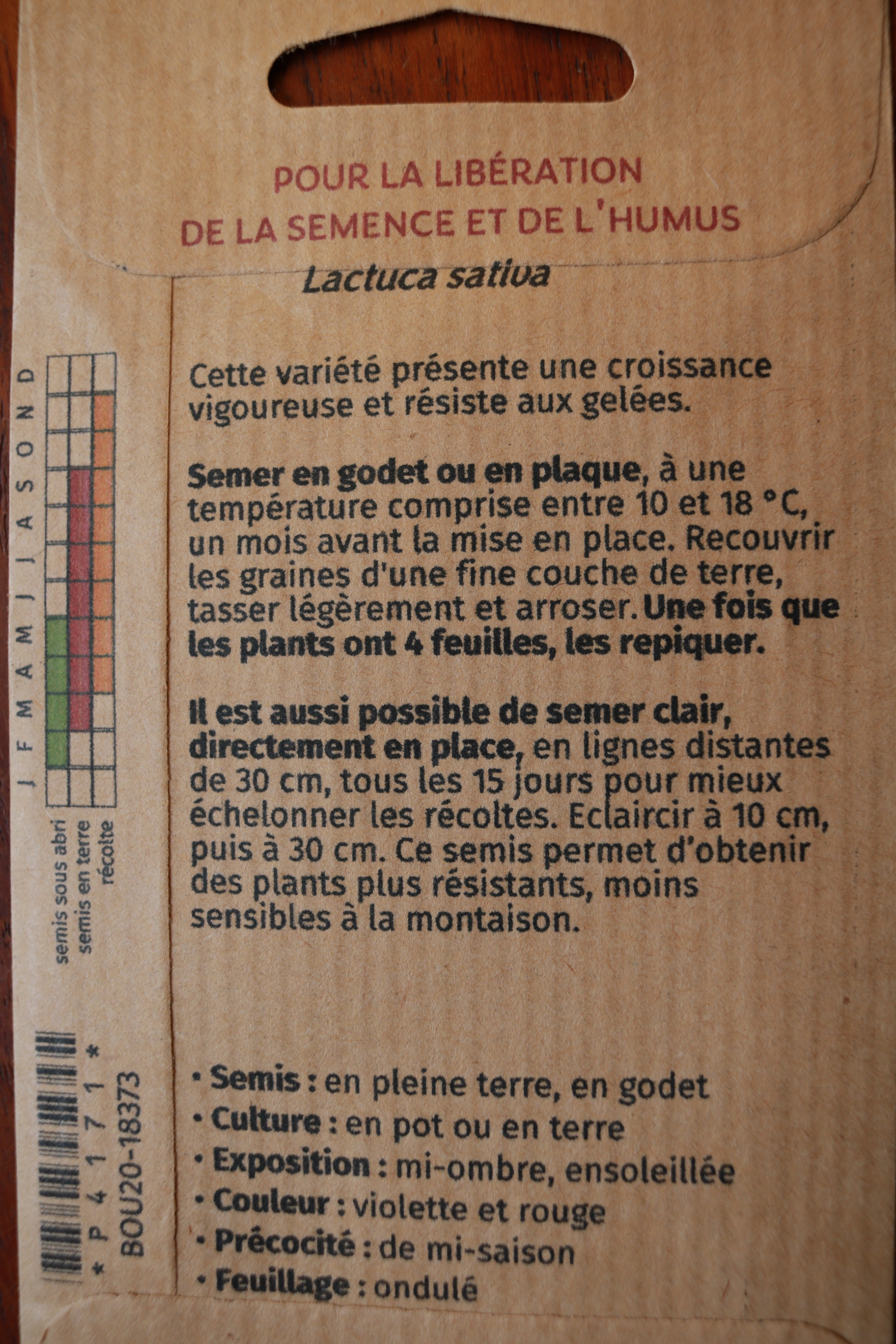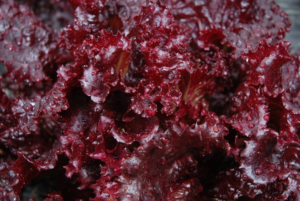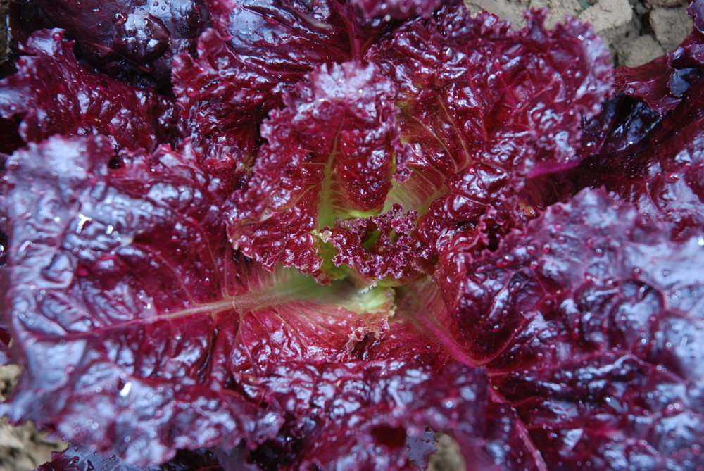 Ein Salat von fantastischer Farbe : der purpurroteste Salat, den es gibt. Sehr offener Kopf. Sehr robuste Sorte, hitze- und frostunempfindlich.