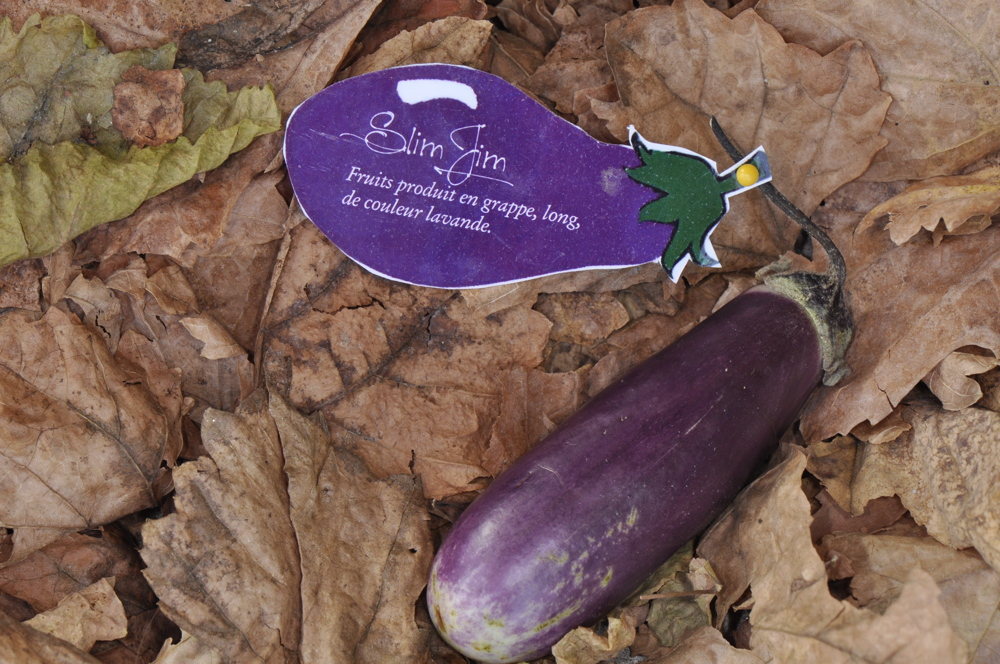 'Slim Jim' Niedrige kompakt wachsende „Baby“-Sorte (40 cm). Auch für sonnige Balkone und in großen Töpfen (4 bis 5 Liter) gut zu ziehen. Die kleinen, handlichen, langgestreckt eiförmigen Früchte (kaum 10 cm) reifen oft zu mehreren in einer „Traube“. Sie gleichen zum großen Teil in der Form dünnen Bananen. Sie sind länglich und blauschwarzviolett. Auch das Laub ist bläulichviolett getönt. Im Garten gut in einem Frühbeetkasten zu ziehen.