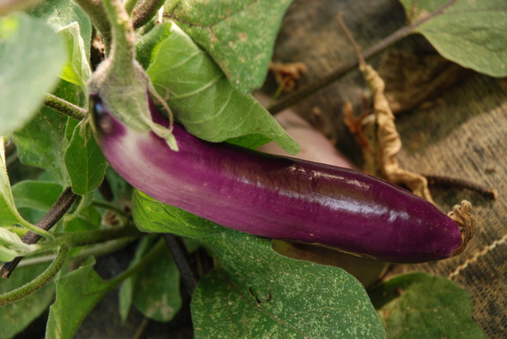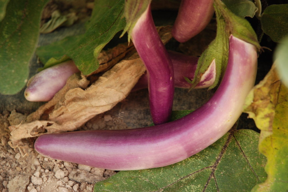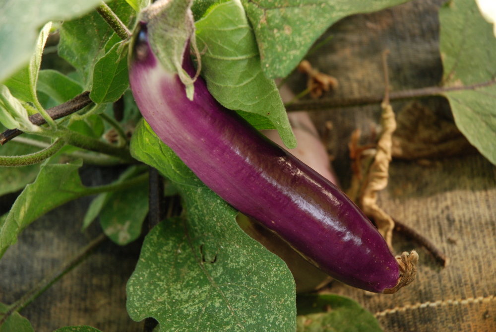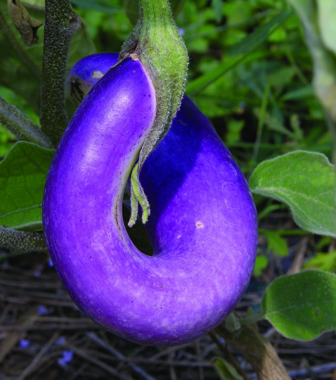 Aus Taiwan, violett, sehr früh. Viele lange, gekrümmte Früchte bis 30 cm.