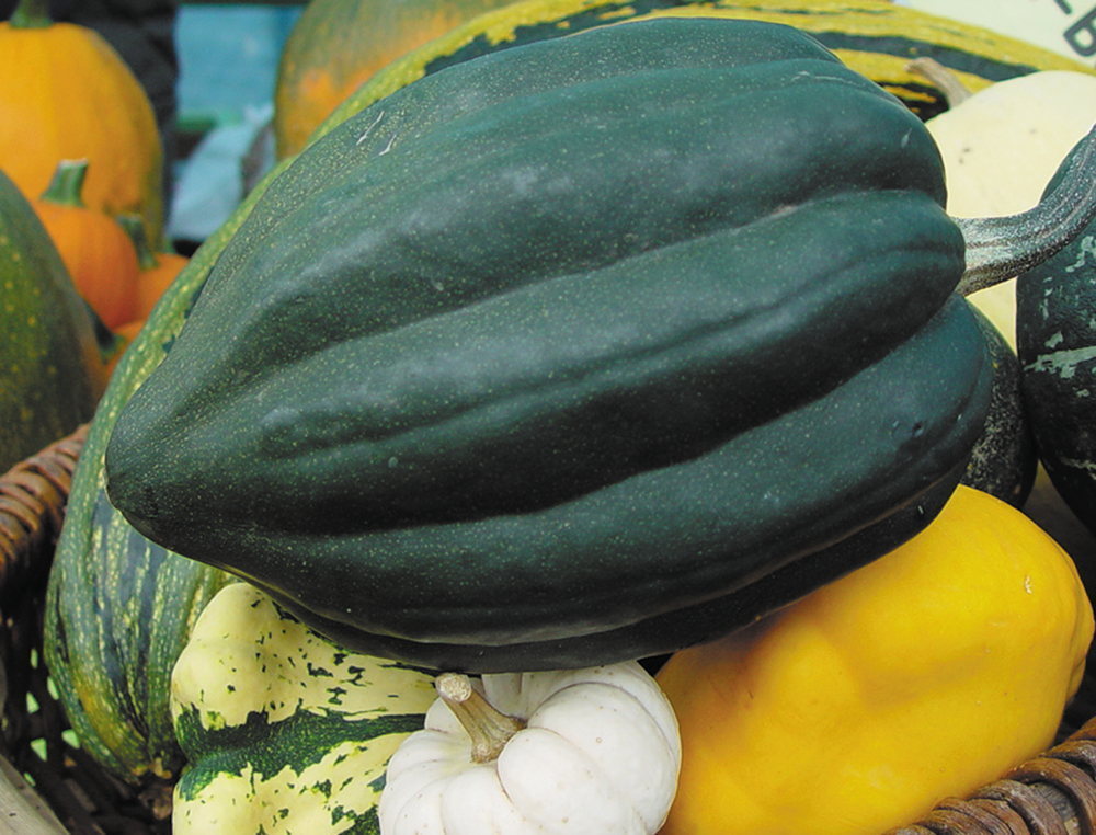Eichelkürbissorte mit einer Fülle von dunkelgrünen Früchten mit sehr harter Schale. Sie können bis zu 2 kg schwer werden und ihr trockenes, duftendes orangefarbenes Fruchtfleisch hat einen nussigen Geschmack, der mit der Zeit immer besser wird. Sie sind 4 bis 8 Monate haltbar.