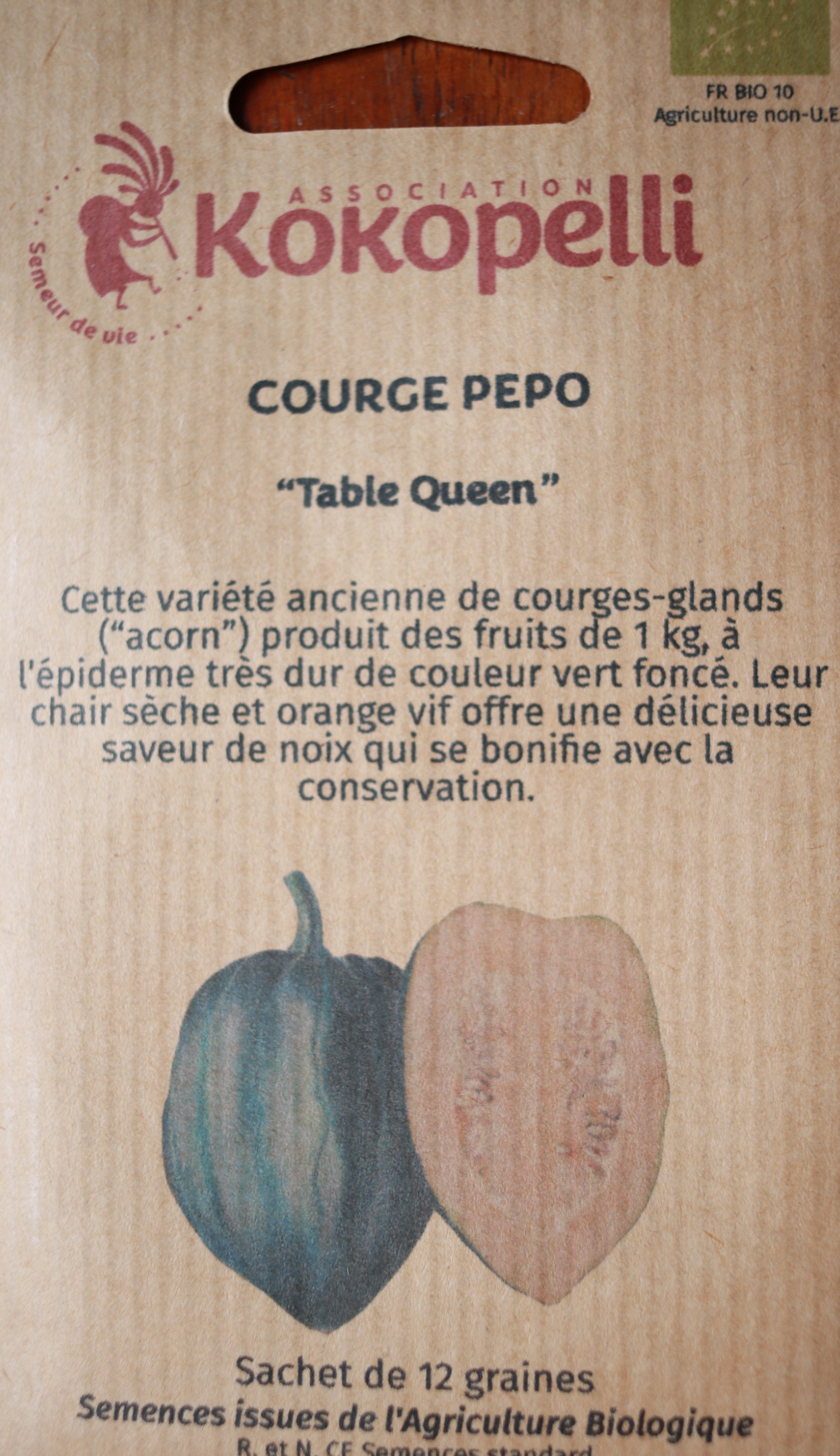 Diese uralte Sorte Eichelkürbis produziert Früchte mit einem Gewicht von 1 kg und einer sehr harten, dunkelgrünen Haut. Ihr trockenes, leuchtend orangefarbenes Fruchtfleisch hat einen köstlichen nussigen Geschmack, der sich mit der Lagerung verbessert.
