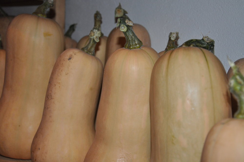 Birnförmig. Ockergelb. Hervorragend für Cremesuppen. Süß. Lange lagerbar. Bis 3 kg.