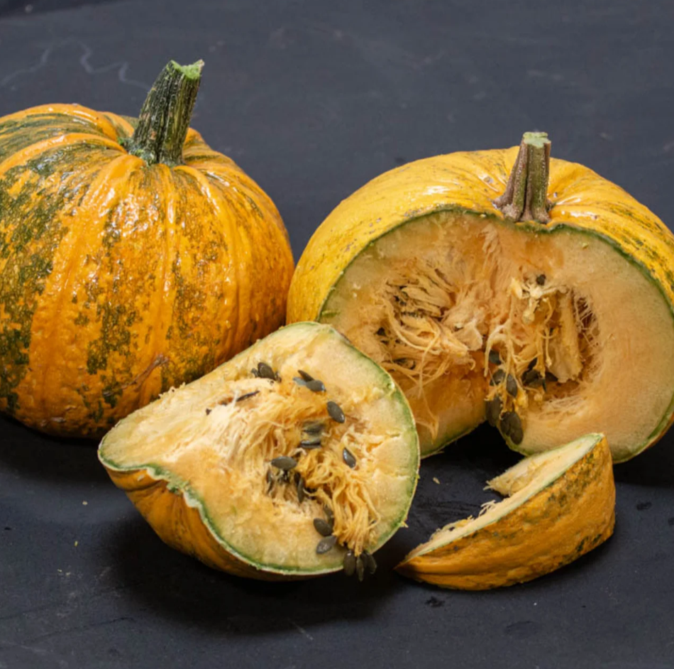 Beschreibung der Geschichte: Diese traditionelle Sorte wurde 1972 von Alan K. Stoner vom Landwirtschaftlichen Forschungsdienst des US-Landwirtschaftsministeriums (USDA) eingeführt. Sie ist eine Kreuzung zweier Nacktsamer-Kürbissorten: „PI 267663“, entwickelt von L. C. Curtis von der Landwirtschaftlichen Versuchsstation Connecticut in den 1940er Jahren, und „Beltsville Accession 102“, vermarktet von Agway im Jahr 1965. Sie ist auch unter den Bezeichnungen „Nacktsamig“ und „Hülsenlos“ bekannt.