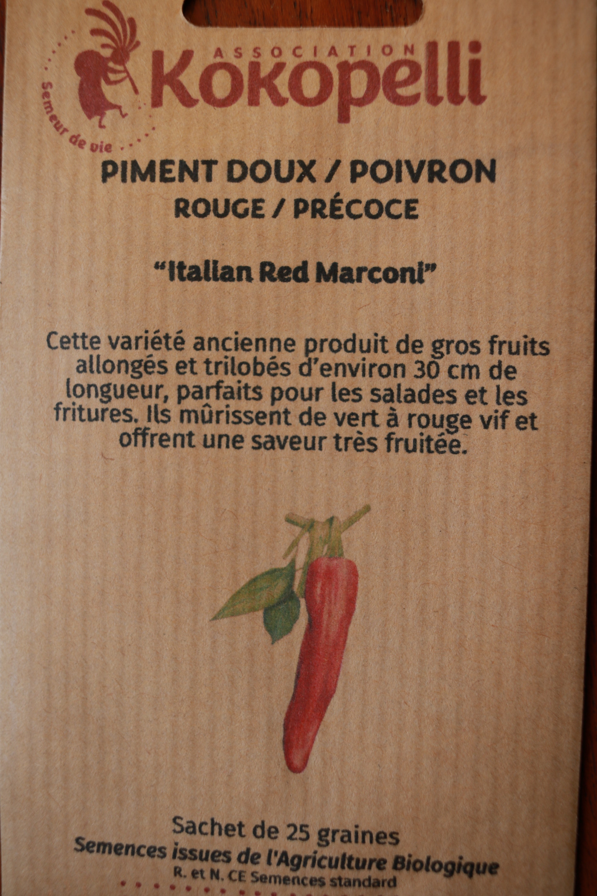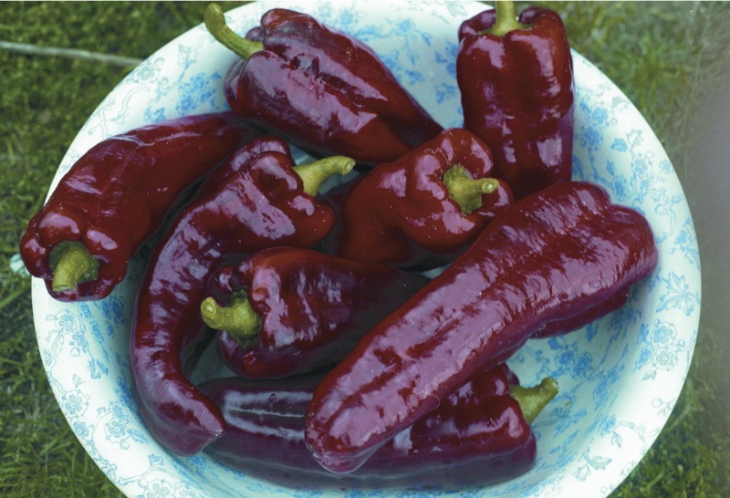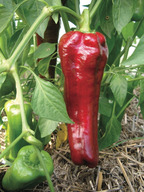 Eine lange rote Paprika mit drei Kammern, bis 30cm lang. Besonders fruchtiges Aroma. Ideal für Salate und zum Anbraten.