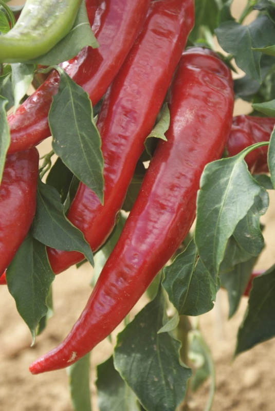 Alte italienische Sorte die 1939 von der "Eastern States Farmer Exchange" gezüchtet wurde. 15 cm, dünne Schale, dicke Fruchtwand, vorzüglicher Geschmack. Virusresistent. Tiefrot. Ideal zum Grillen.