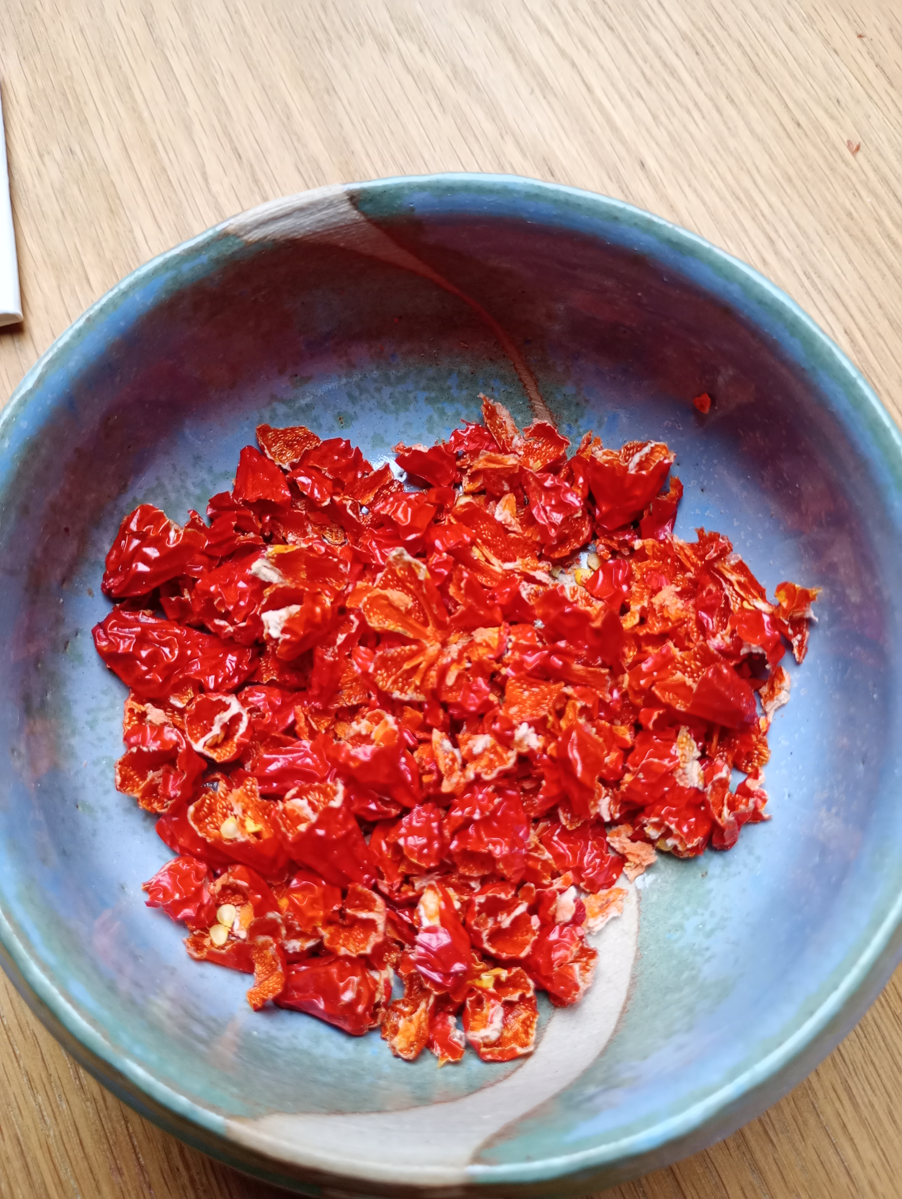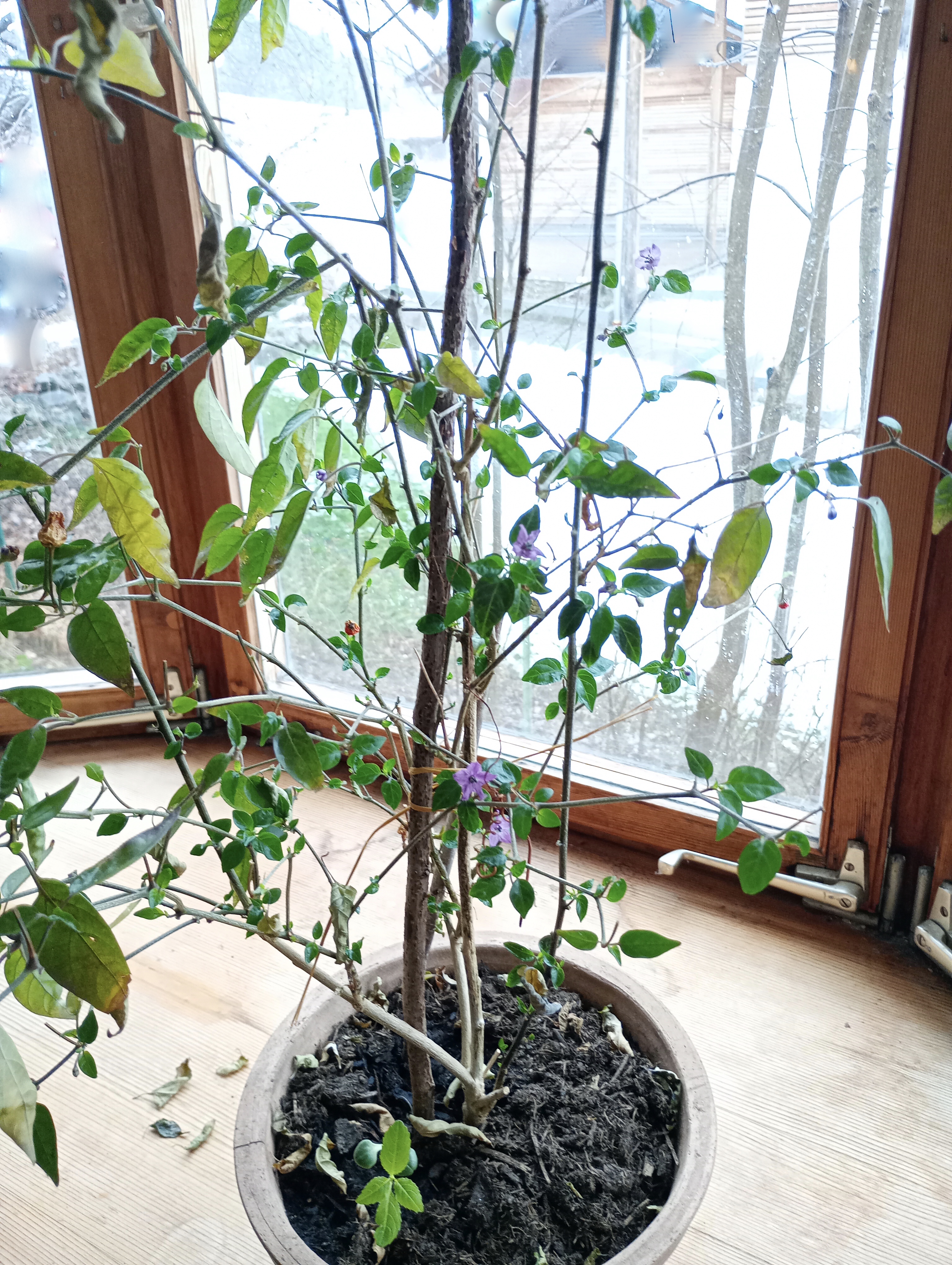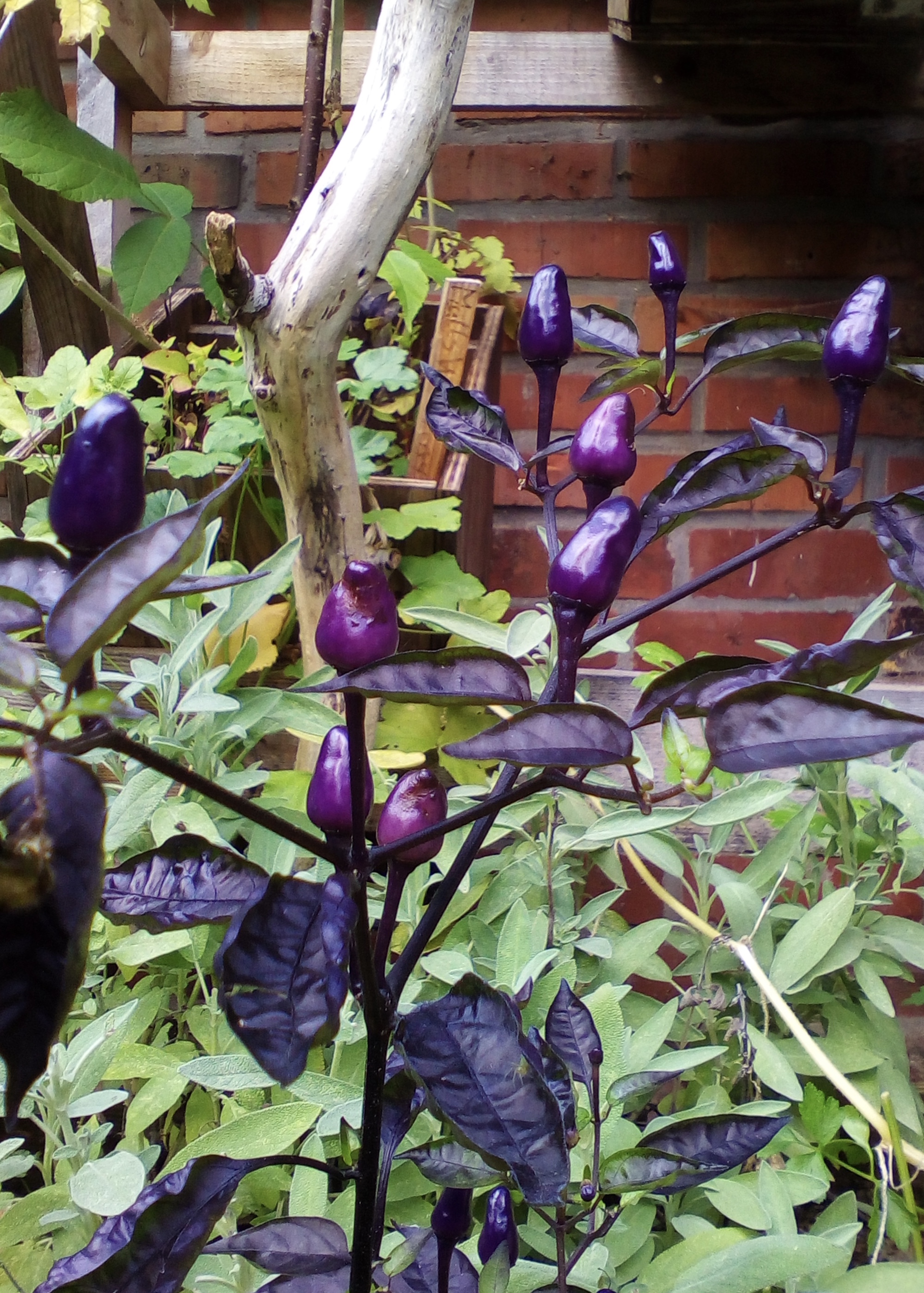 Kleine Chili Pflanze, die überwintert werden kann und über die Jahre bis zu 50 cm hoch wird. Die frischen Früchte leuchten lila und werden bei trocknen rot.