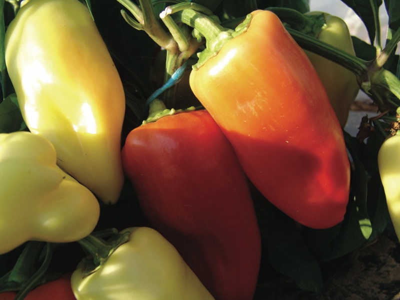 Sehr schöne Originalsorte aus Ungarn. Früchte reifen von Weiß über Gelb und Orange nach Rot aus.