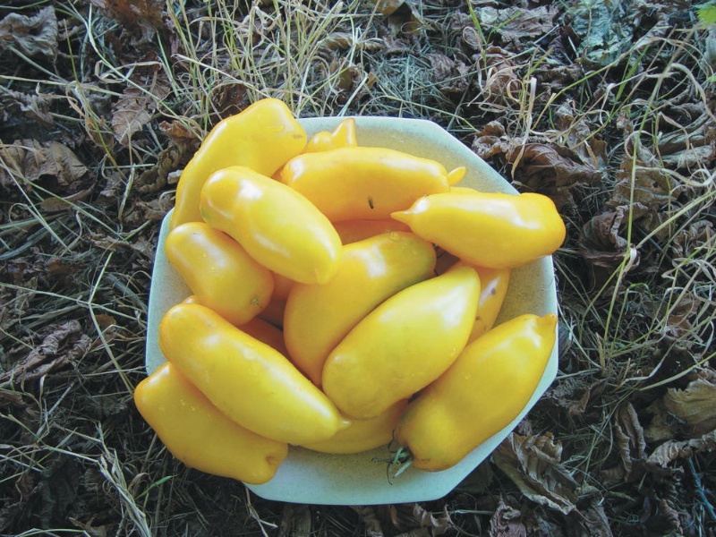 Leuchtend zitronengelbe, längliche, gewundene Früchte, 10 cm. Exzellentes Aroma. Stabtomate. kbA, Inhalt: 25 Korn