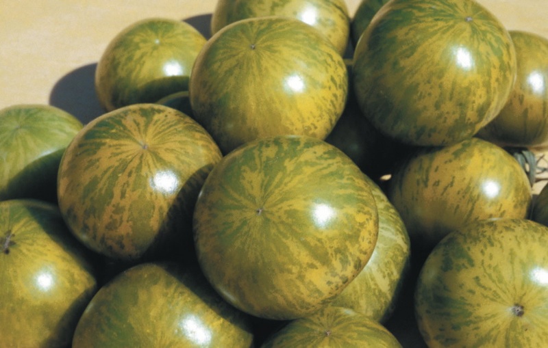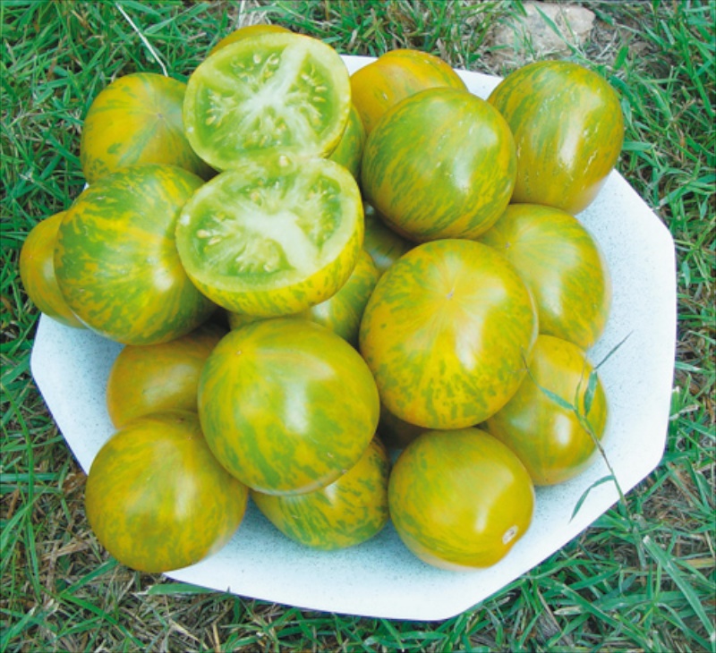 grünerTiger-Tomate!!! Rund, hellgrün-gelb. Aromatisch-süß.