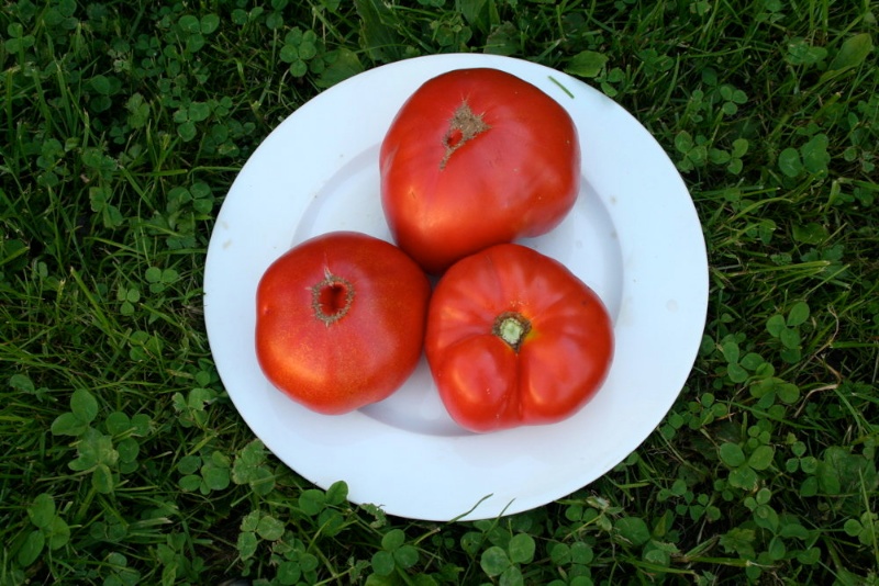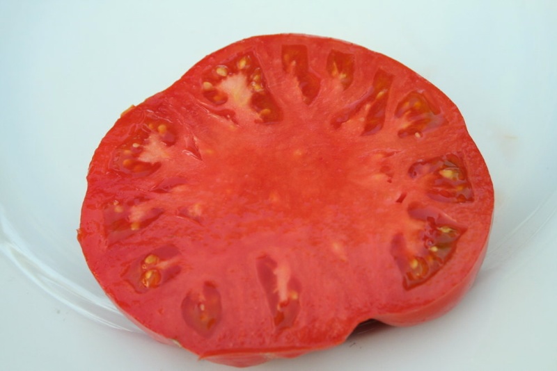 Außergewöhnlich. Tiefrot, orangegeflammte Basis. Sehr robust u. resistent! Festes, saftiges Fruchtmark. Exzellentes Aroma. 400-500g. Kartoffellaub.