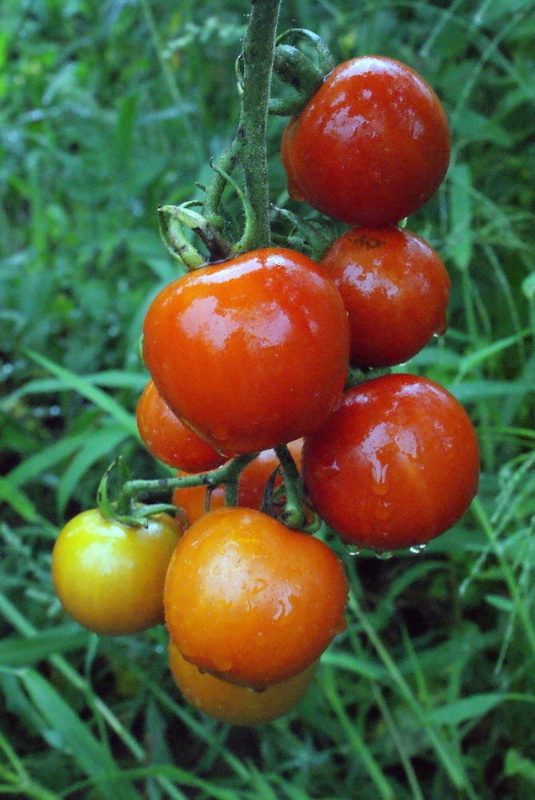 Herrliche Ursorte/Mexiko. Fülle an kleineren, süßen, dabei aber vollaromatischen Cocktailtomaten für Genießer. Tiefrot. Rund. Mittelgroß. Sehr saftig. Kaum Säure. Platzfest. Hitzebeständig. Sehr gut für die späte Ernte.