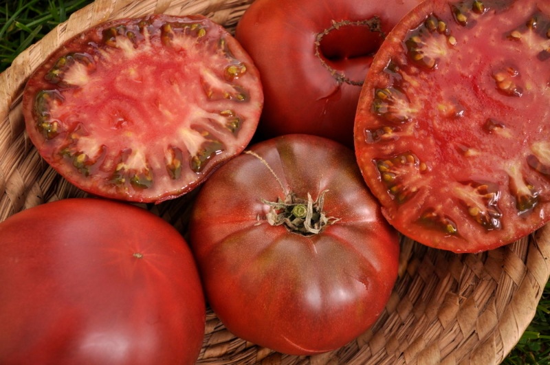 Wärmeliebend. Sehr ertragreiche Stabtomate. Wunderschön dunkel, rund.