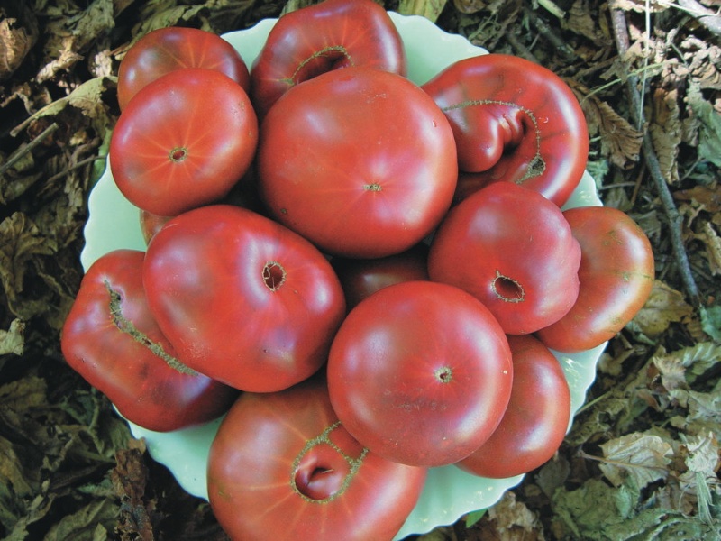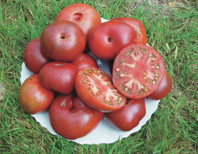 Russland. Tiefrotbraun. Hocharomatisch. Sehr süß. 300-400g. Leicht abgeflacht. Stabtomate. Üppiges Laub. 80-85 Tage. Mittlere Erträge. kbA, Inhalt: 25 Korn