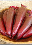 Lange, walzenförmige Rüben, oberirdisch. Leicht zu hobeln, auch Baby-Bete, köstlich. Aussaat: bis Juli