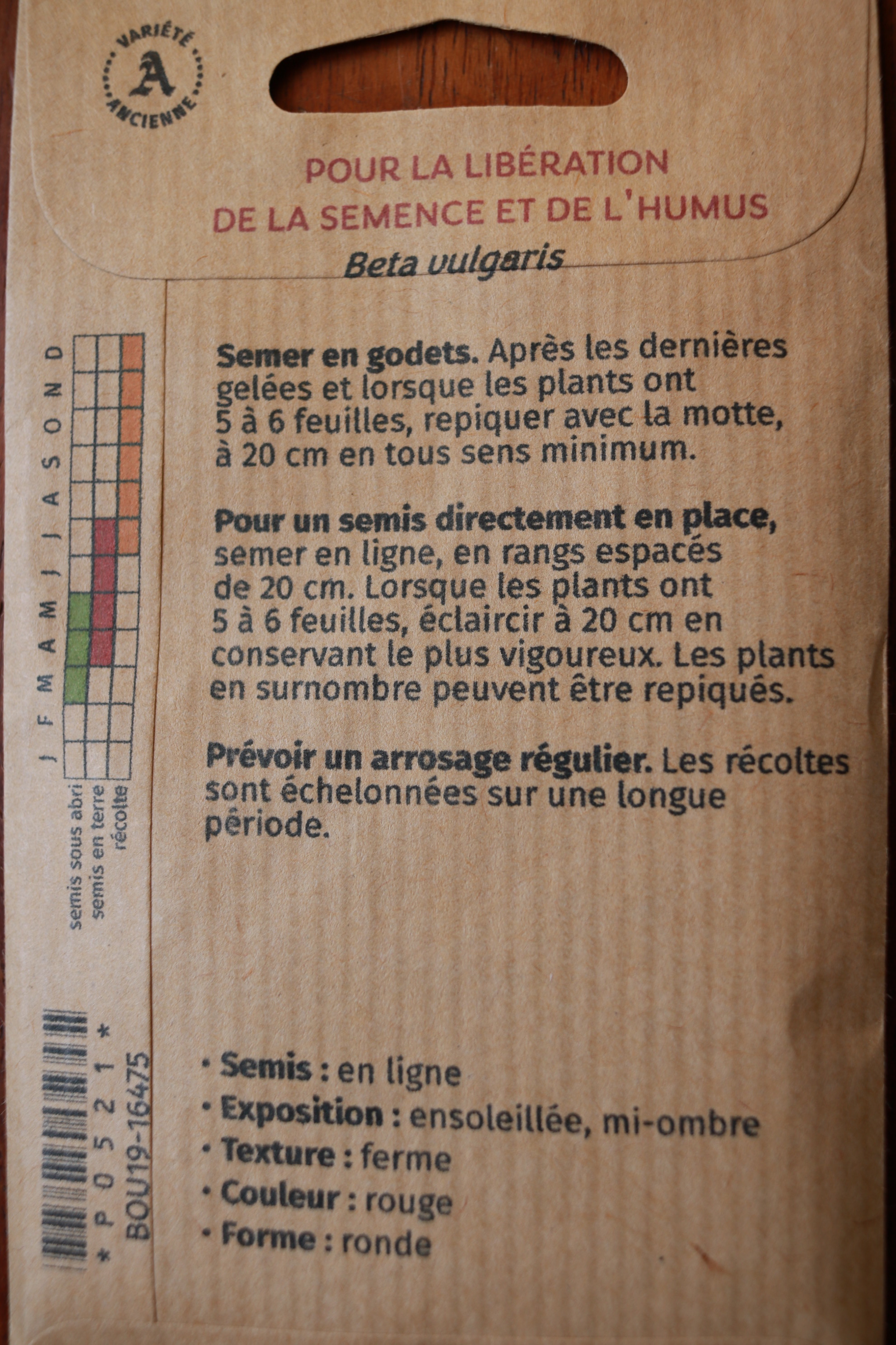 Diese alte Sorte hat großes und glänzendes Laub, sehr geschätzt, und abgerundete Wurzeln von 10 cm Durchmesser, glatte rote Schale. Dunkelrotes festes Fruchtfleisch.