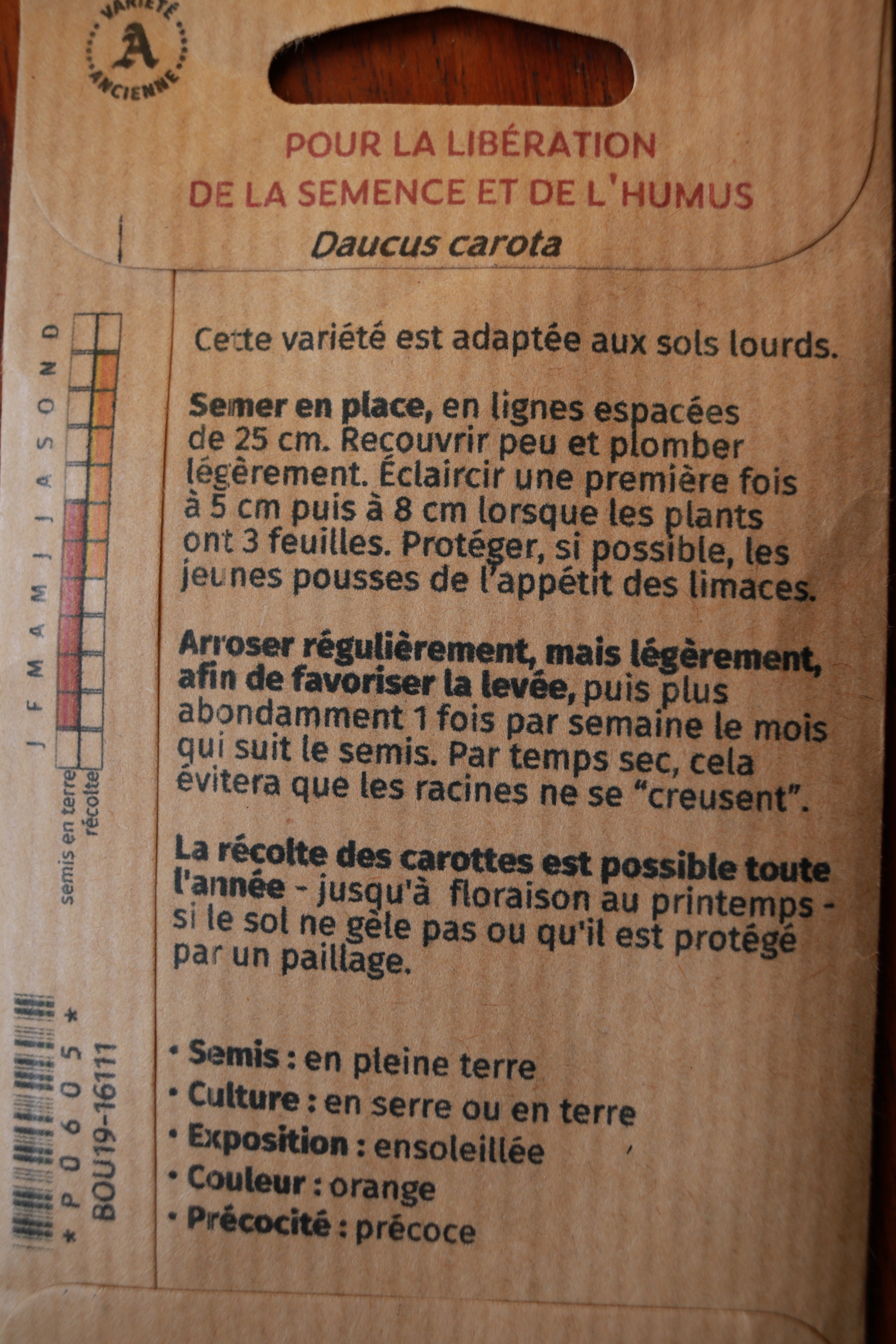 von 1829. Babykarotte, schnellwüchsig. Fantastischer Geschmack. Aussaat: bis Juli, Inhalt:ca. 4 g von Kokopelli