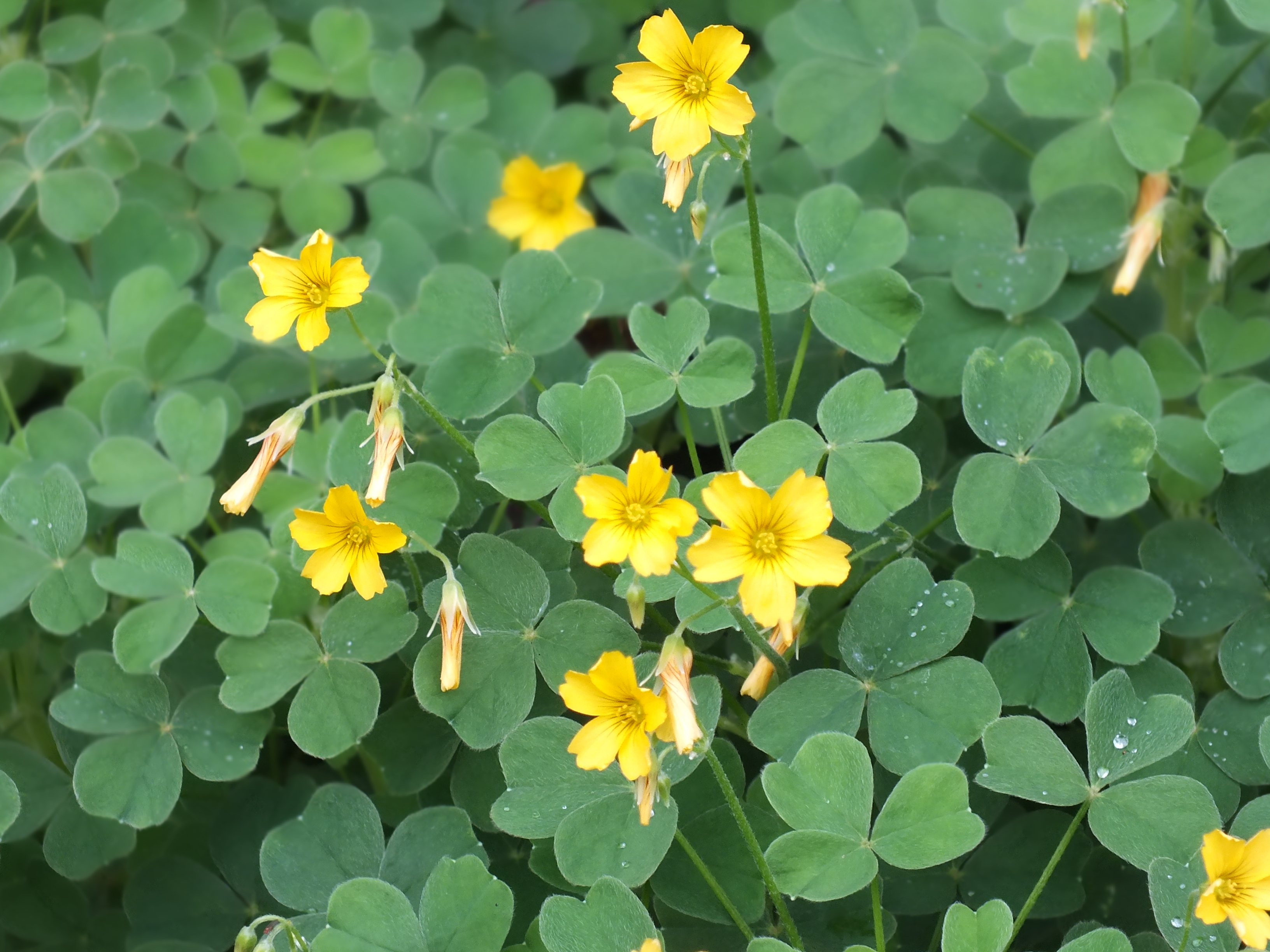buschig. Blätter wie Klee. Blüten (gelb) und gegen Mitte Oktober, teils aber auch ab