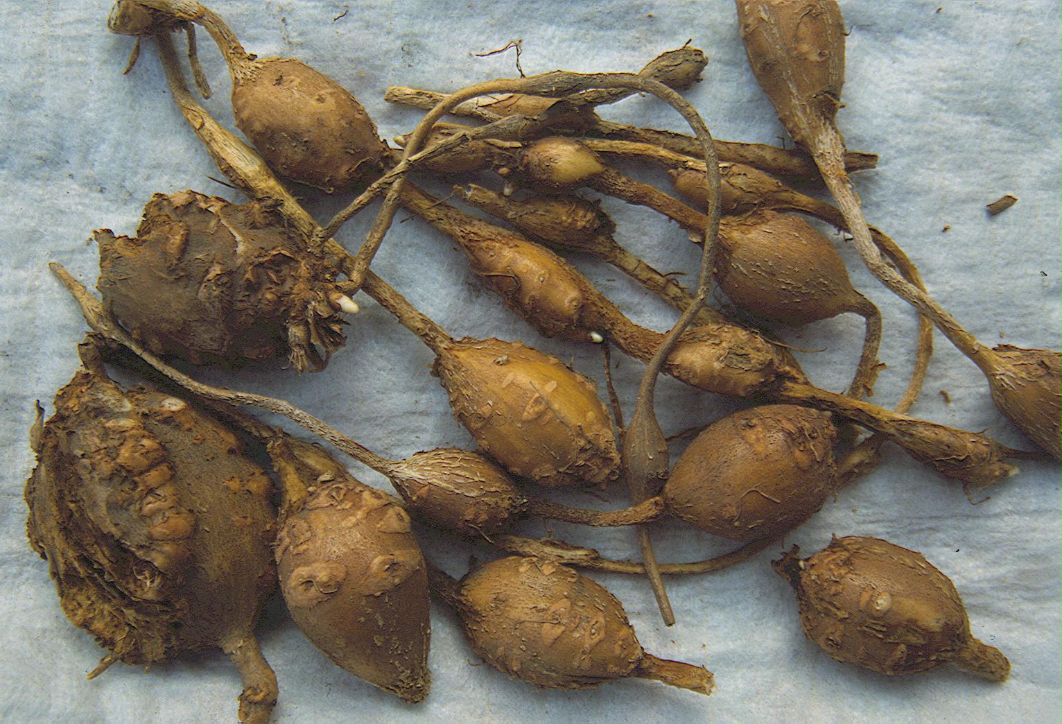 einer 2-jährigen, fast kartoffelgroßen Knolle. Ernte ab Frühwinter bis ca. April möglich.