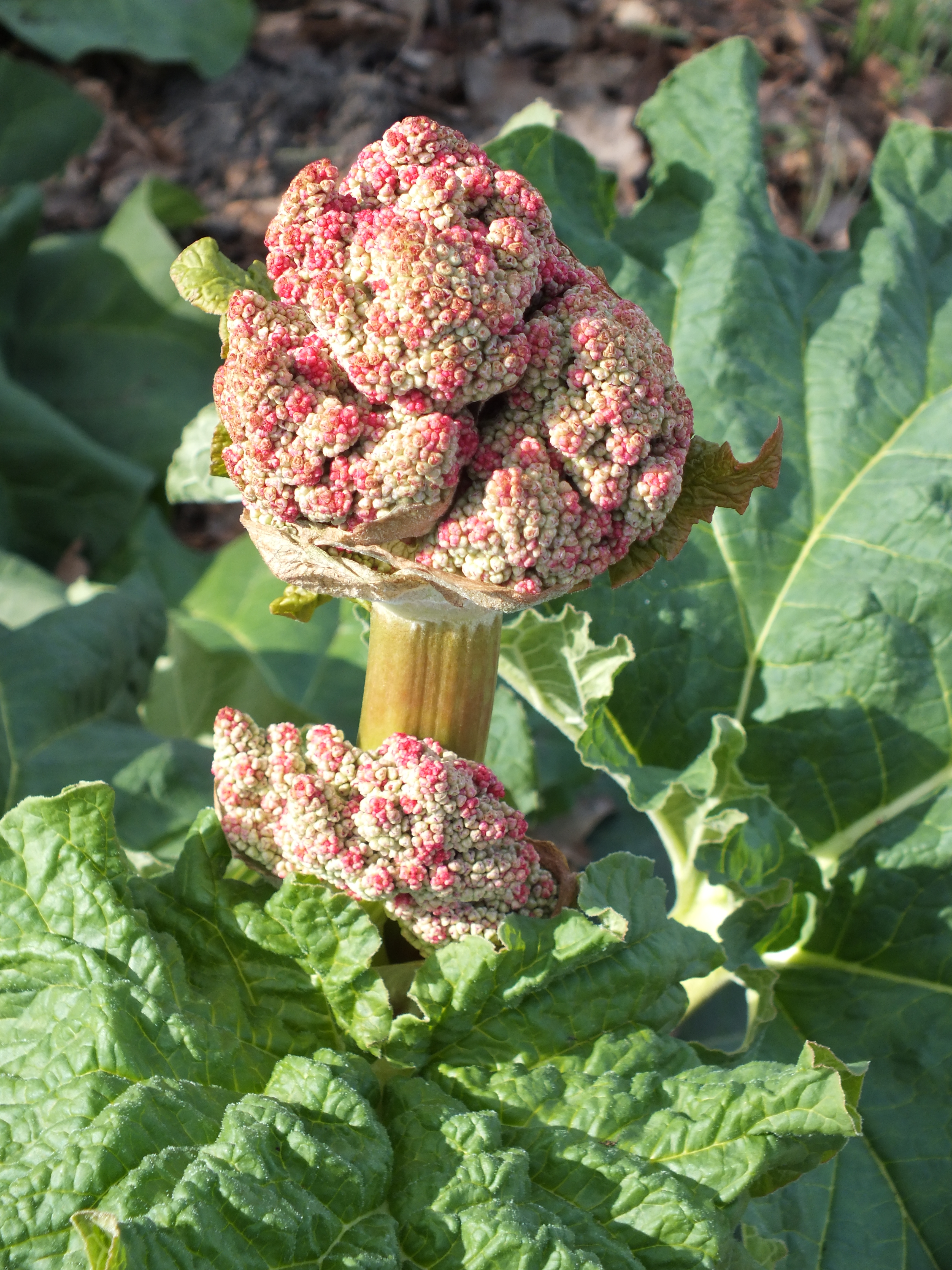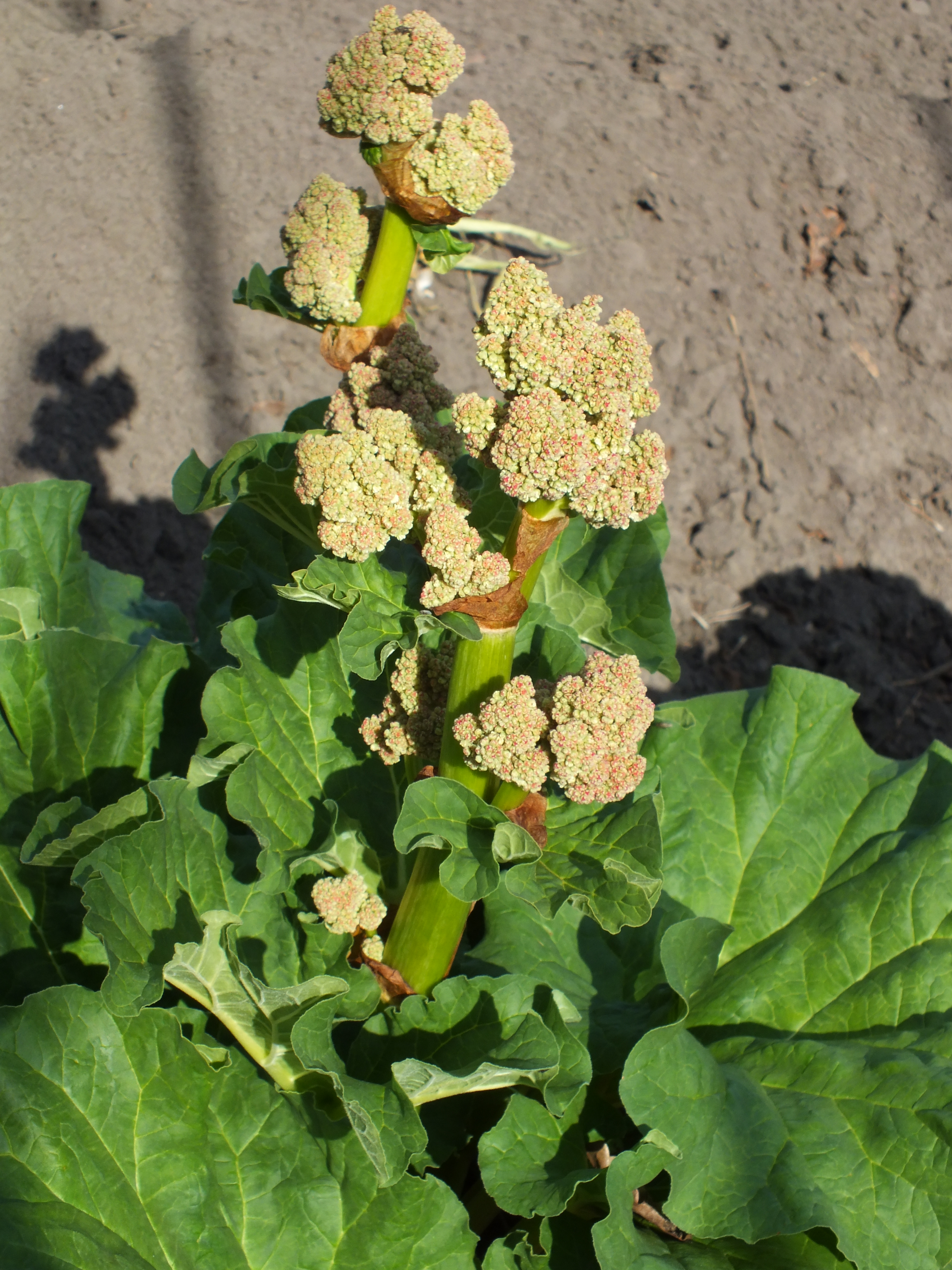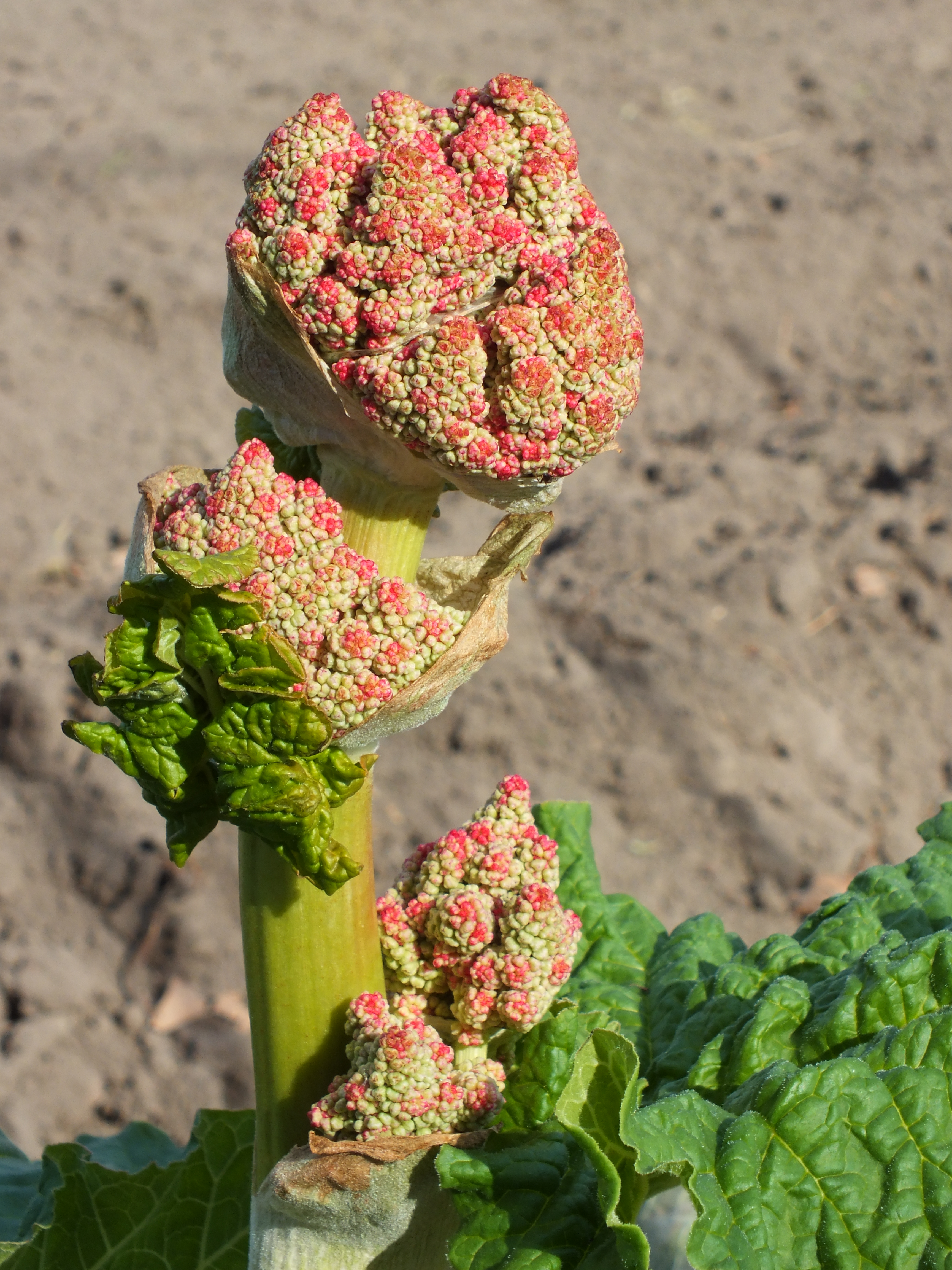 Wer schon einmal Wurzelstöcke von Rhabarber gekauft hat, wird dies kaum mehr tun, denn meist treibt solche Ware, da sie bis zum Extrem zerstückelt wird, überhaupt nicht aus. Weit effektiver ist die Aussaat, die allerdings sehr unterschiedliche Pflanzen bringt. Man muss daher eine strenge Auslese vornehmen und rund die Hälfte der Pflanzen wegwerfen. Unsere Sämlingspflanzen wuchsen schon im 2. Standjahr zu wuchtigen Stauden heran, von denen man bereits einige Stiele nehmen konnte. Spätestens im 3. Standjahr sind die Pflanzen aber so kräftig, dass man sie bis in den Juli hinein beernten kann. Wenn man die über 2 m hoch werdenden Blütenstängel möglichst bald entfernt, geht die Kraft der Pflanzen in Stängel und Blätter.