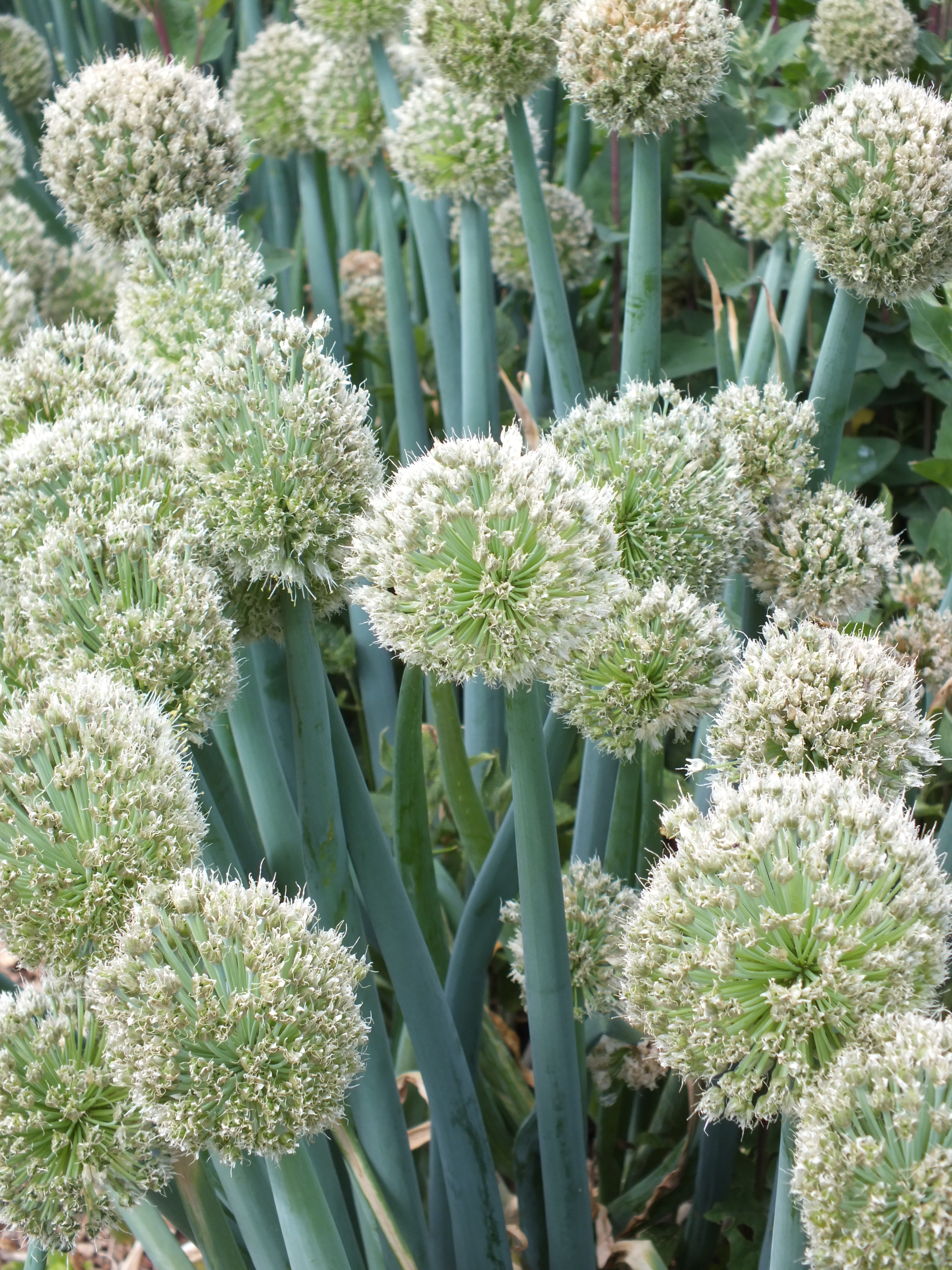 Ausdauernde Gemüse- und Würzpflanze für den Küchengarten. Bei dieser Zwiebelart werden vor allem die aromatischen Schlotten als vitaminreiche Kost im zeitigen Frühjahr und über den Sommer genommen. Auch die grünweißlichen Blütenbälle sind essbar. Pflanze bildet regelrechte Stöcke, die alle 2 - 3 Jahre geteilt werden können oder Neuanzucht. Winterheckenzwiebeln können auch einjährig als Bundzwiebel angebaut werden. Keine Zwiebelbildung, nur schwache Verdickung.Höhe ca. 50 cm. Rasch nachwachsend, Winterhart. Aussaat im Frühjahr oder Sommer- und Herbstaussaat