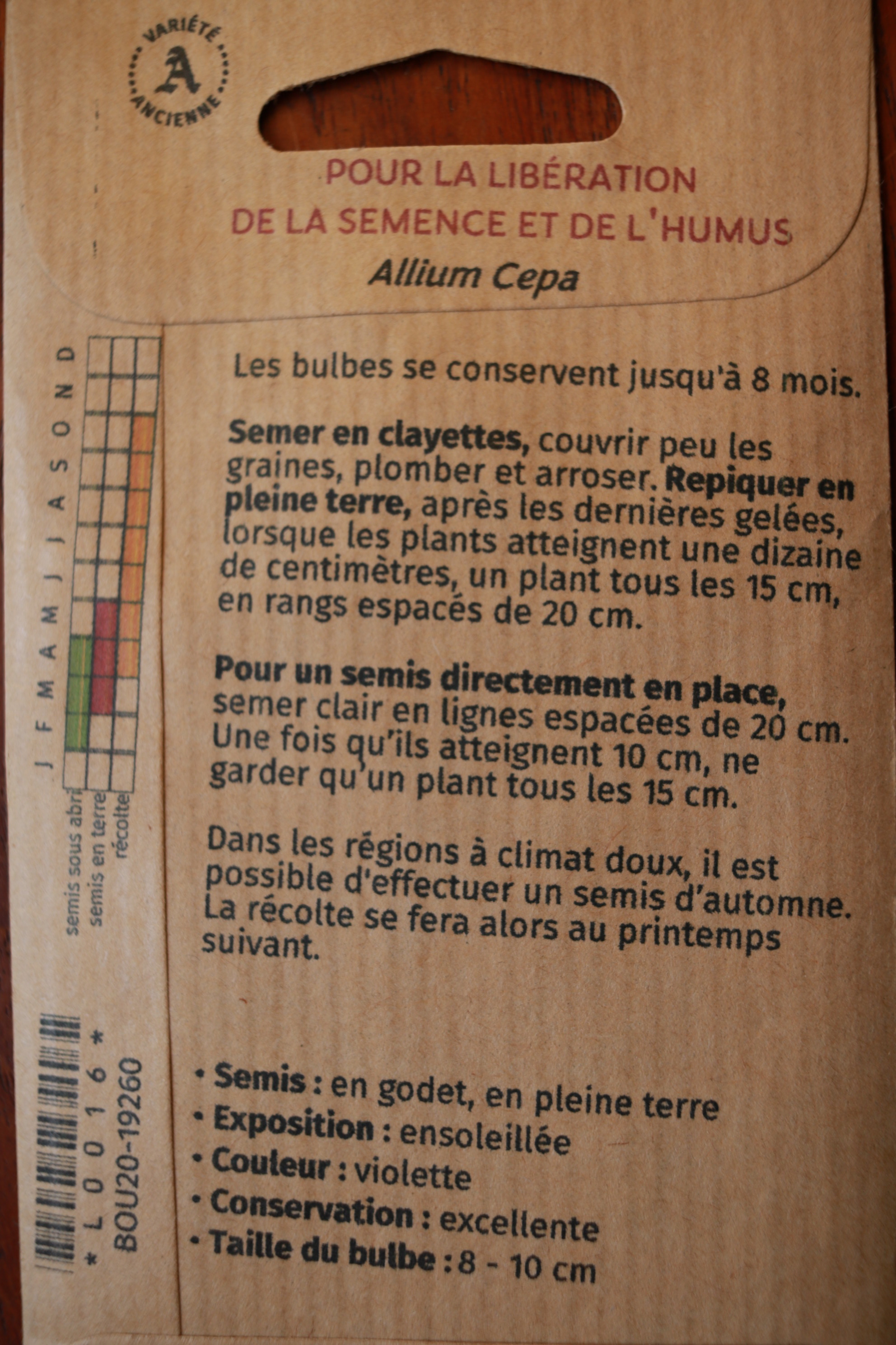 Diese runde und flache alte Sorte aus der Schweiz mit einer dunkelvioletten Farbe eignet sich zur Herstellung von Zwiebelgeflechten. Das Wachstum ist langsamer als bei Sorten mit gelber Schale. Die Knollen sind bis zu 8 Monate haltbar. Aussaat (unter Glas): Feb, März, April. Freiland: März, April, Mai. Inhalt 2 g. KbA.