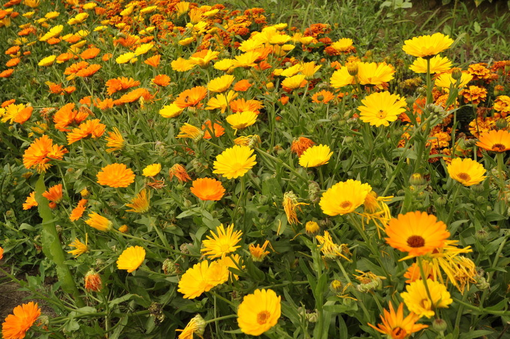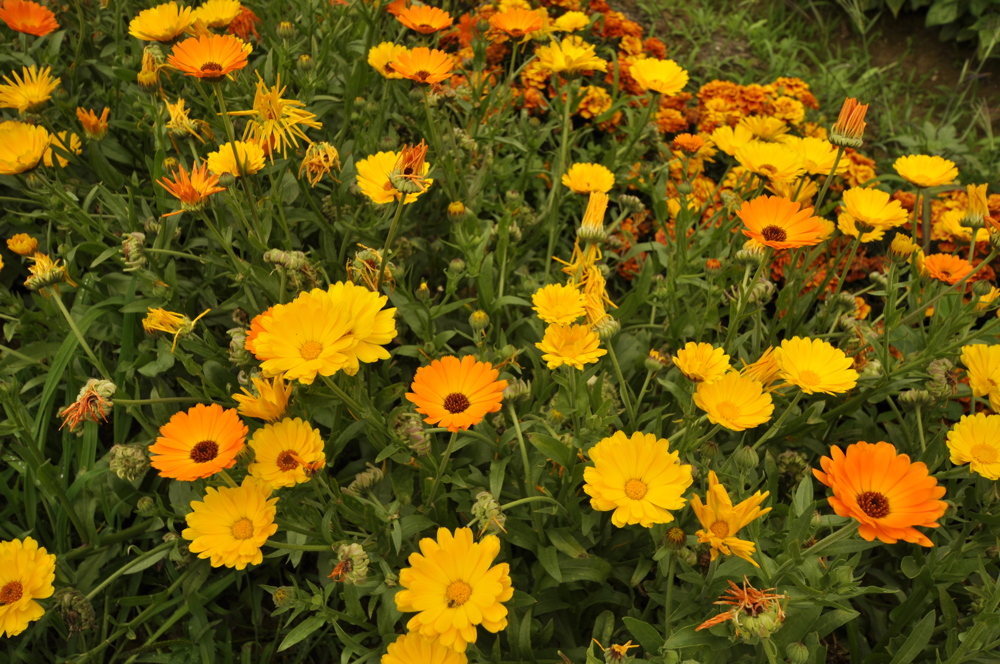 Mischung von orangen und gelben Blüten. Urform. Heilpflanze für Salben/Tees.