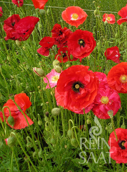 Ein absolut anspruchsloser, auffallend mittelrot blühender Wildmohn, der sich selbst in in großem Maßstab aussät.. Ideal in Wiesen und für naturgärten.