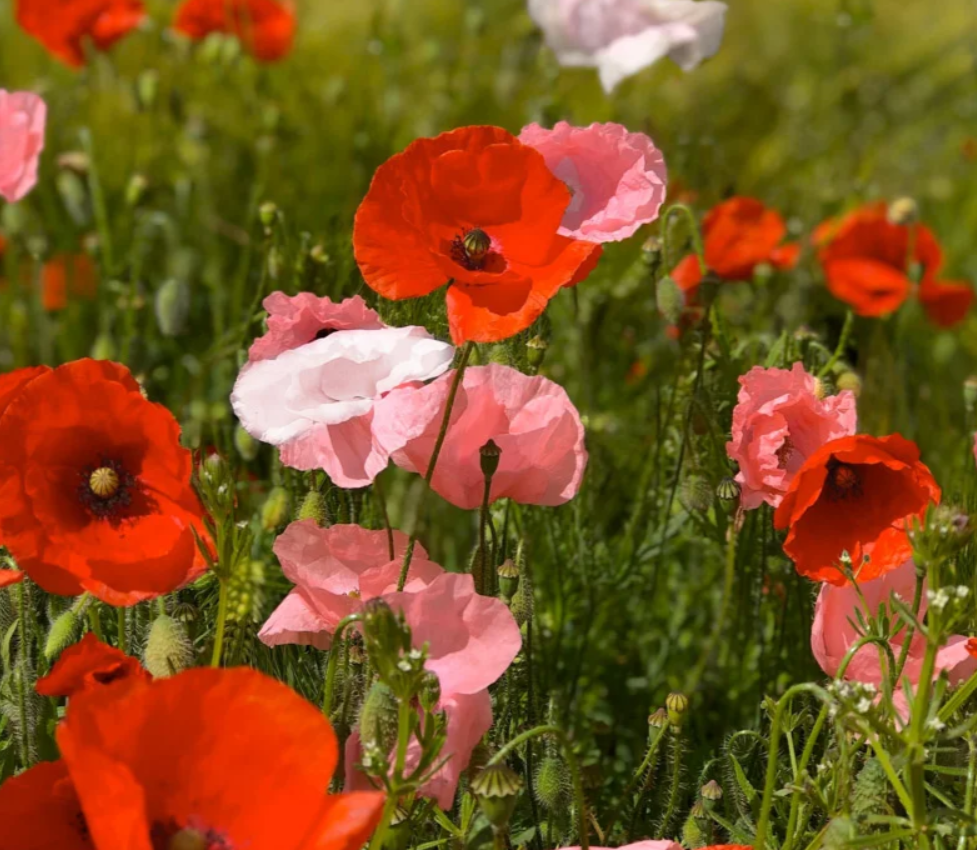 Feldmohn-Mischung mit roten, rosafarbenen und weißen Sorten