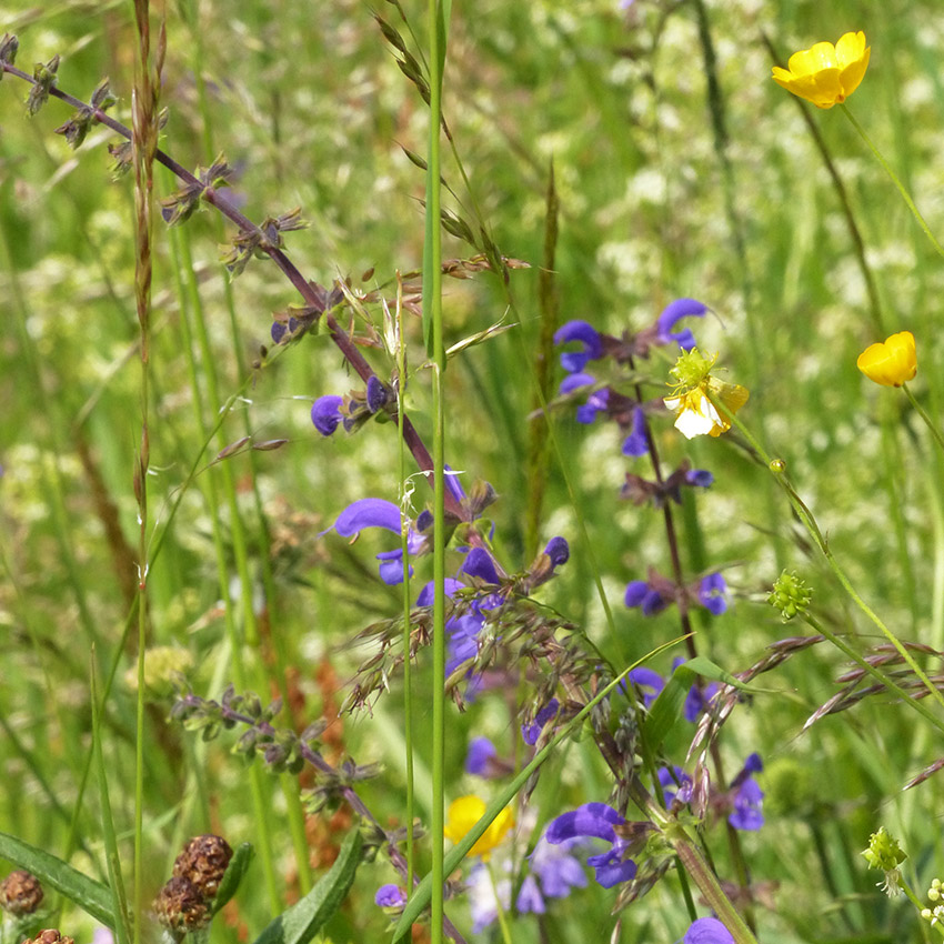 Braunelle, Gr. Braunelle, Knolliger Hahnenfuß, Wiesensalbei, Kleiner Wiesenknopf, Taubenskabiose, Rotes Starußgras,